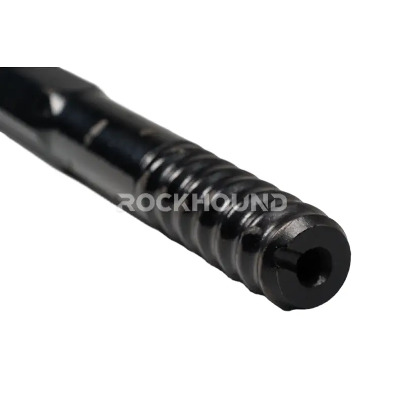 Las cañas MF R32-D32-R32 de RockHound utilizan el R32 hilo en ambos extremos: la rosca estándar del sector para sistemas de taladro largo de 32 mm (1 1/4").